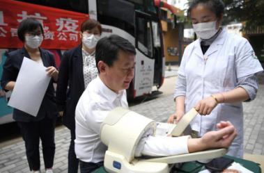 5月14日9點,省血液中心的愛心獻(xiàn)血車駛進(jìn)山師東路4號院內(nèi)。為避免人員聚集,預(yù)防獻(xiàn)血過程中可能出現(xiàn)的交叉感染,前來獻(xiàn)血的黨員干部職工在醫(yī)務(wù)人員的引導(dǎo)下,佩戴口罩、填表登記、測溫測壓、檢查血型、抽取血液,現(xiàn)場秩序井然、有條不紊。