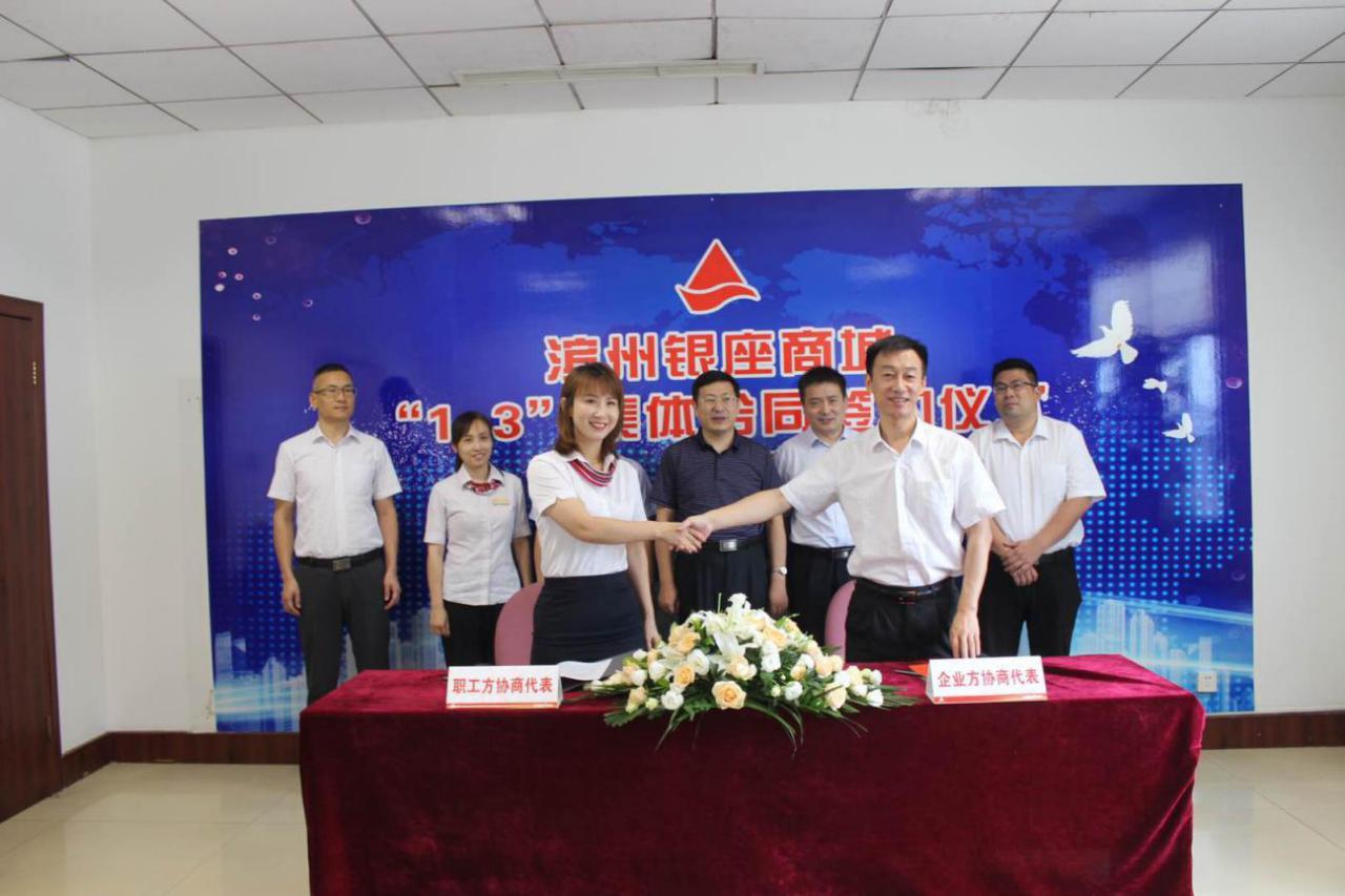 8月5日,在省財貿金融工會的推動指導下,濱州銀座商城工會與行政舉行了1+3集體合同簽約儀式。