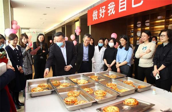 在名廚獻藝環節,齊魯首席技師于德水為大家講解養生知識、家常菜制作小技巧,并現場進行廚藝展示。女職工們動手制作了迷你烤肉披薩,學習了食品制作技巧,還有三位幸運兒的作品被評為“最美披薩”,獲得了現場職工們的一致好評。
