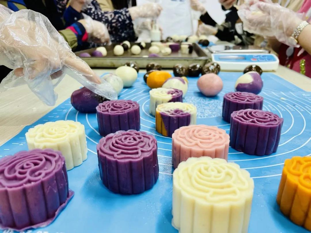 活動現場,面點師傅先給大家分享關于月餅制作的知識和技巧,并現場演示月餅的制作方法。在老師的指導下,打平、搓圓、壓模、出模,每個人都化身月餅師傅,在一片歡聲笑語中,一盤盤精致的月餅呈現在大家眼前。