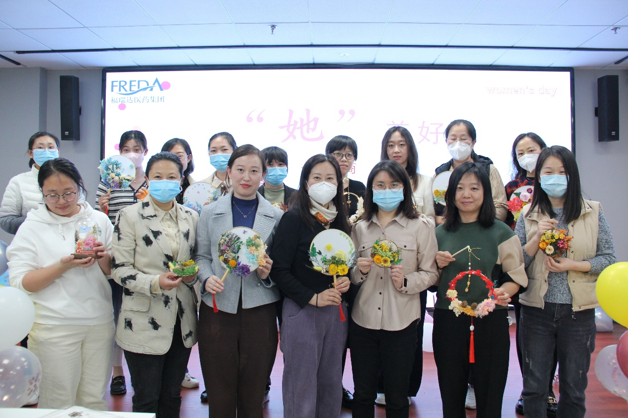 福瑞達組織拍攝“奉獻魯商,‘她’魅力”主題宣傳視頻,視頻以女員工的日常工作場景為主,全面展示巾幗風采。福瑞達、明仁福瑞達、福瑞達生物開展永生花制作等多種手作活動,一件件作品寄托了女職工對美好生活的期望與熱愛。