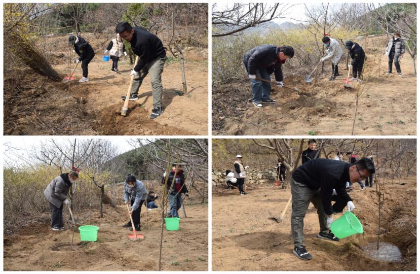 植樹現場,大家揮鍬鏟土、扶苗正苗、填土踩實、提水澆灌,各組團員青年干勁十足、協作融洽,經過一個多小時的努力,一顆顆樹苗在田地里“安家落戶”,也將春天里象征希望的種子深深埋下。