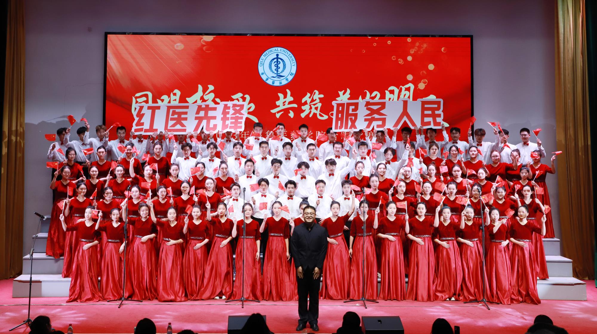 11月16日,“同唱校歌 共筑美好明天”齊魯醫藥學院2023年合唱比賽舉行。學校黨委副書記、校長韓冰,黨委委員、副校長杜敏,黨委委員、紀委書記周立峰,黨委委員、副校長耿磊出席比賽。
