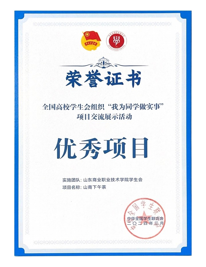 3月24日,由共青團中央指導,全國學聯主辦的全國高校學生會組織“我為同學做實事”項目交流展示活動圓滿閉幕,山東商職學院申報的“山商下午茶”被評為交流展示活動“優(yōu)秀項目”。