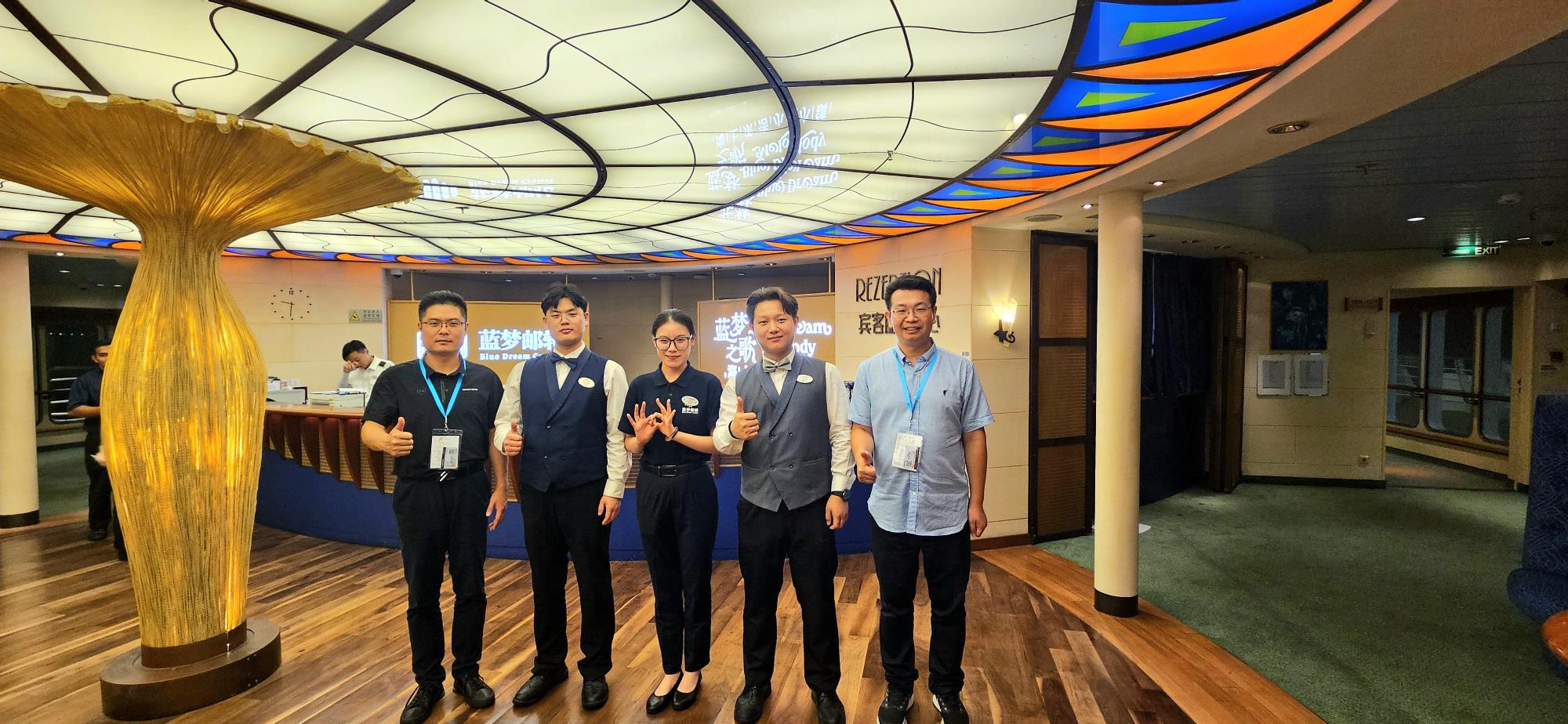 活動(dòng)期間,學(xué)校教師還走訪看望了13名在郵輪實(shí)習(xí)、就業(yè)以及大會(huì)志愿服務(wù)的學(xué)生,并同“藍(lán)夢(mèng)之歌”號(hào)負(fù)責(zé)郵輪運(yùn)營(yíng)服務(wù)的管理人員開(kāi)展座談交流,征求工作建議,船方高級(jí)管理人員對(duì)我校學(xué)生的整體工作表現(xiàn)給予廣泛好評(píng)。