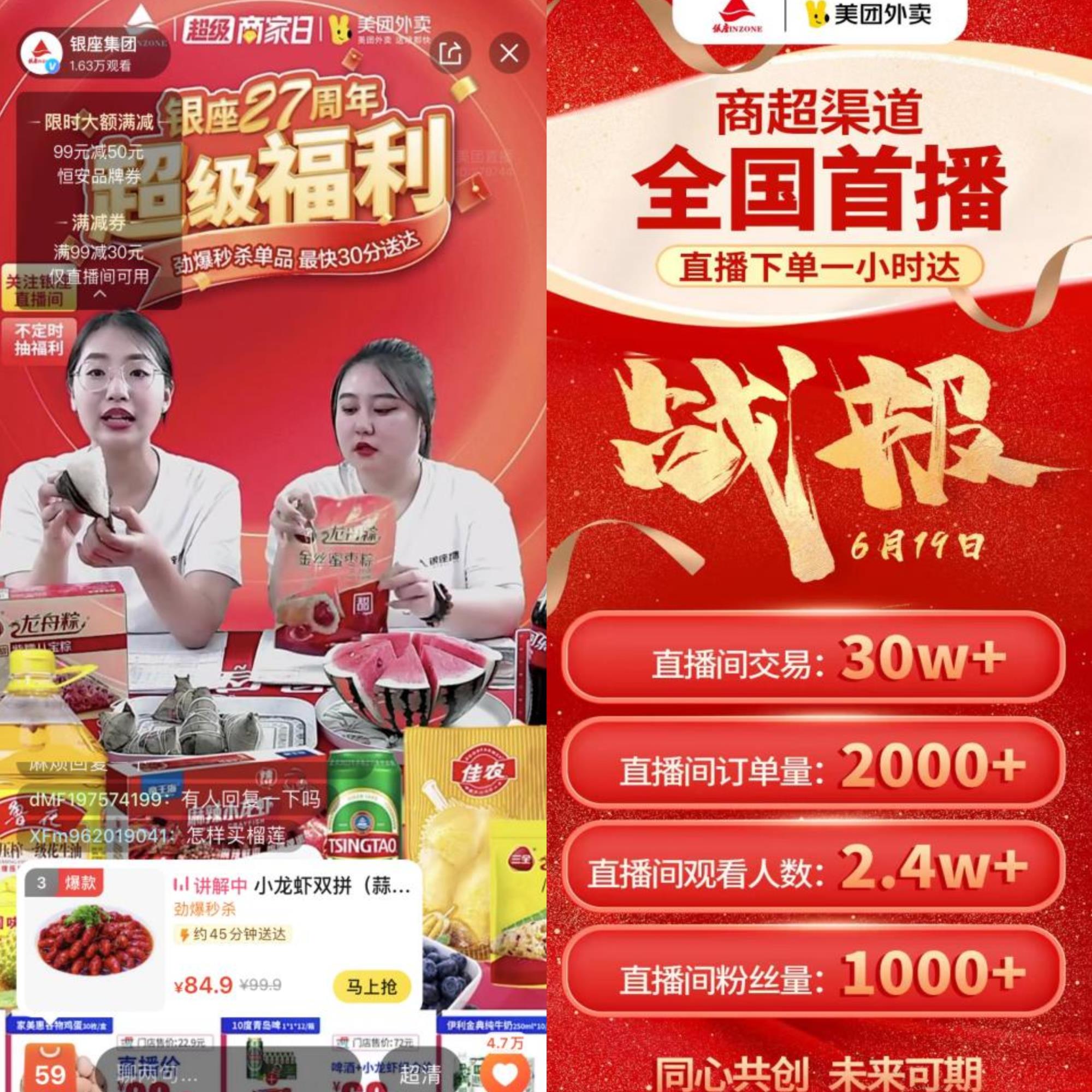 近日,為探索新場景營銷,打造“直播下單、一小時達”的即時零售新玩法,銀座集團聯動美團超市閃購組織開展首場直播活動。