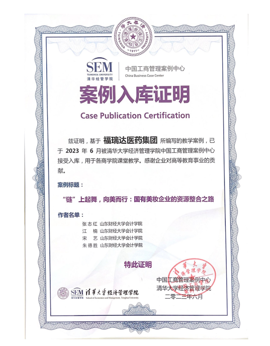 近日,福瑞達(dá)聯(lián)合山東財(cái)經(jīng)大學(xué)以福瑞達(dá)美妝板塊價值創(chuàng)造模式為研究對象編制的《“鏈”上起舞,向美而行:國有美妝企業(yè)的資源整合之路》企業(yè)案例被正式收錄于清華大學(xué)經(jīng)濟(jì)管理學(xué)院中國工商管理案例庫。