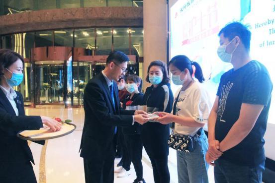 在臨沂魯商鉑爾曼大酒店,酒店為即將入住的客人提前準備好房卡及歡迎客信,“平安虎”作為夜床禮物也帶去一份真摯的祝愿。酒店精心組織“最美天使頒發儀式”,由業主代表為醫護工作者頒發最美天使榮譽證書,用鄭重的儀式表達對他們的感謝。