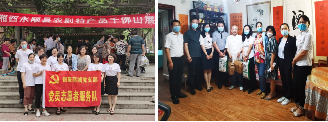 在社區(qū)舉辦的湘西扶貧農(nóng)副產(chǎn)品展銷現(xiàn)場(chǎng),銀座集團(tuán)總部和商城店黨員志愿隊(duì)按照疫情防控要求,認(rèn)真維持秩序,為社區(qū)群眾提供優(yōu)質(zhì)的服務(wù),并將購(gòu)買的農(nóng)副產(chǎn)品作為慰問(wèn)品送到社區(qū)困難黨員家中。