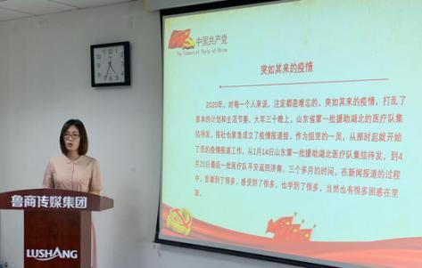 7月1日,正值中國(guó)共產(chǎn)黨建黨99周年之際,為進(jìn)一步增強(qiáng)黨員先鋒意識(shí),激發(fā)黨組織戰(zhàn)斗活力,魯商傳媒黨委開(kāi)展“我來(lái)講黨課”活動(dòng)。本次活動(dòng)邀請(qǐng)山東戰(zhàn)“疫”最美新聞工作者、山東商報(bào)記者劉慶英,為黨員干部講黨課《記著,學(xué)著》。魯商傳媒黨委書(shū)記、董事長(zhǎng)孫超,黨委副書(shū)記、總經(jīng)理、總編輯龐道鋒出席活動(dòng)。