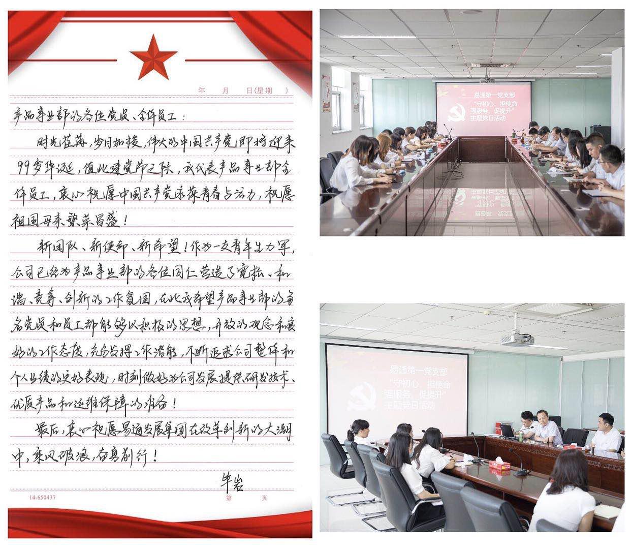 為慶祝中國共產黨建黨99周年,切實鞏固“不忘初心、牢記使命”主題教育實效,6月以來,易通積極開展“不忘初心跟黨走 多彩活動慶七一”系列活動,通過學習研討、業務比拼、專題黨課等形式,進一步引導和激勵全體黨員守初心、擔使命,充分發揮黨組織的戰斗堡壘和黨員的先鋒模范作用。