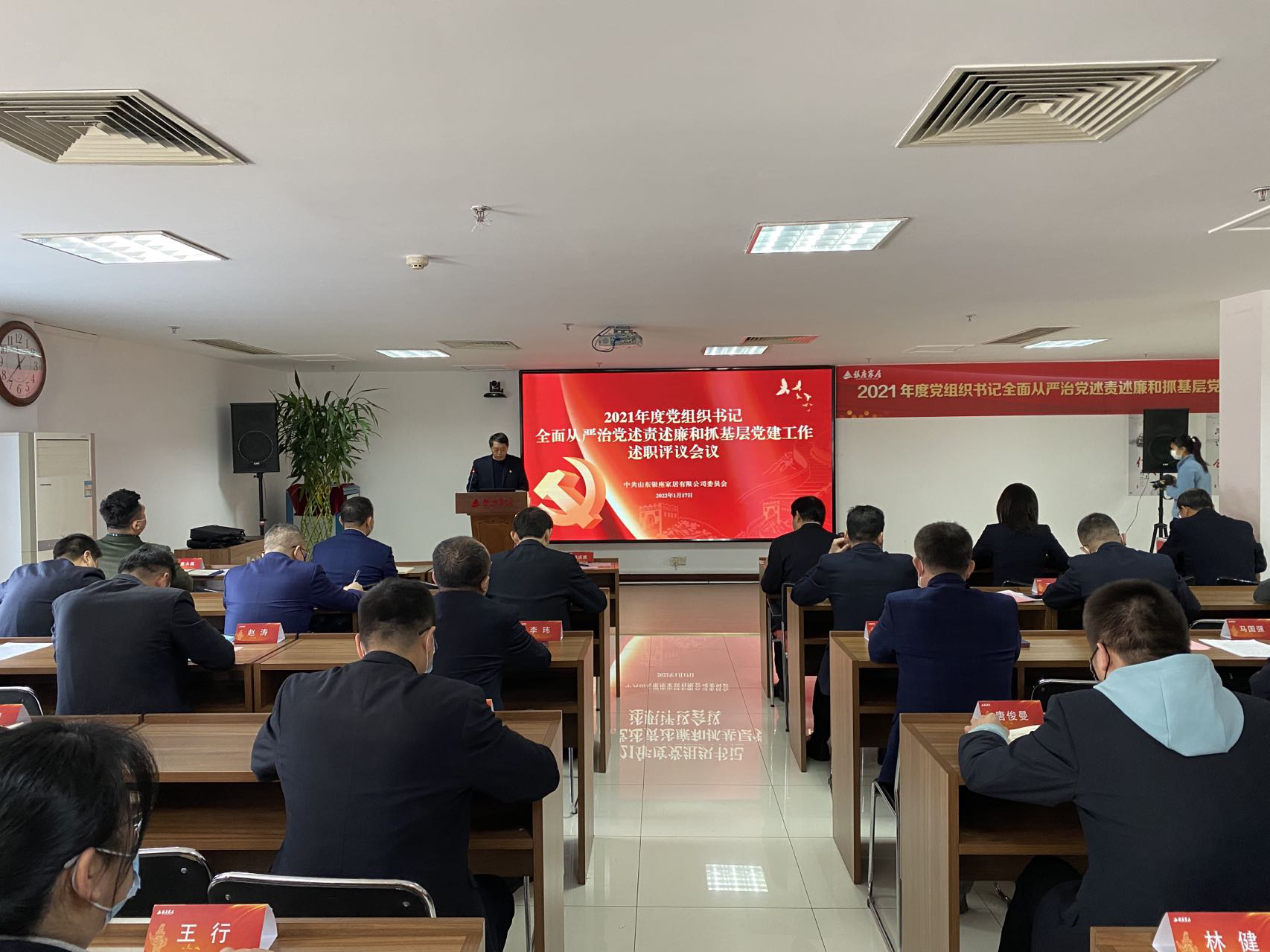 1月17日,銀座家居召開2021年度黨組織書記全面從嚴治黨述責述廉和抓基層黨建工作述職評議會議。