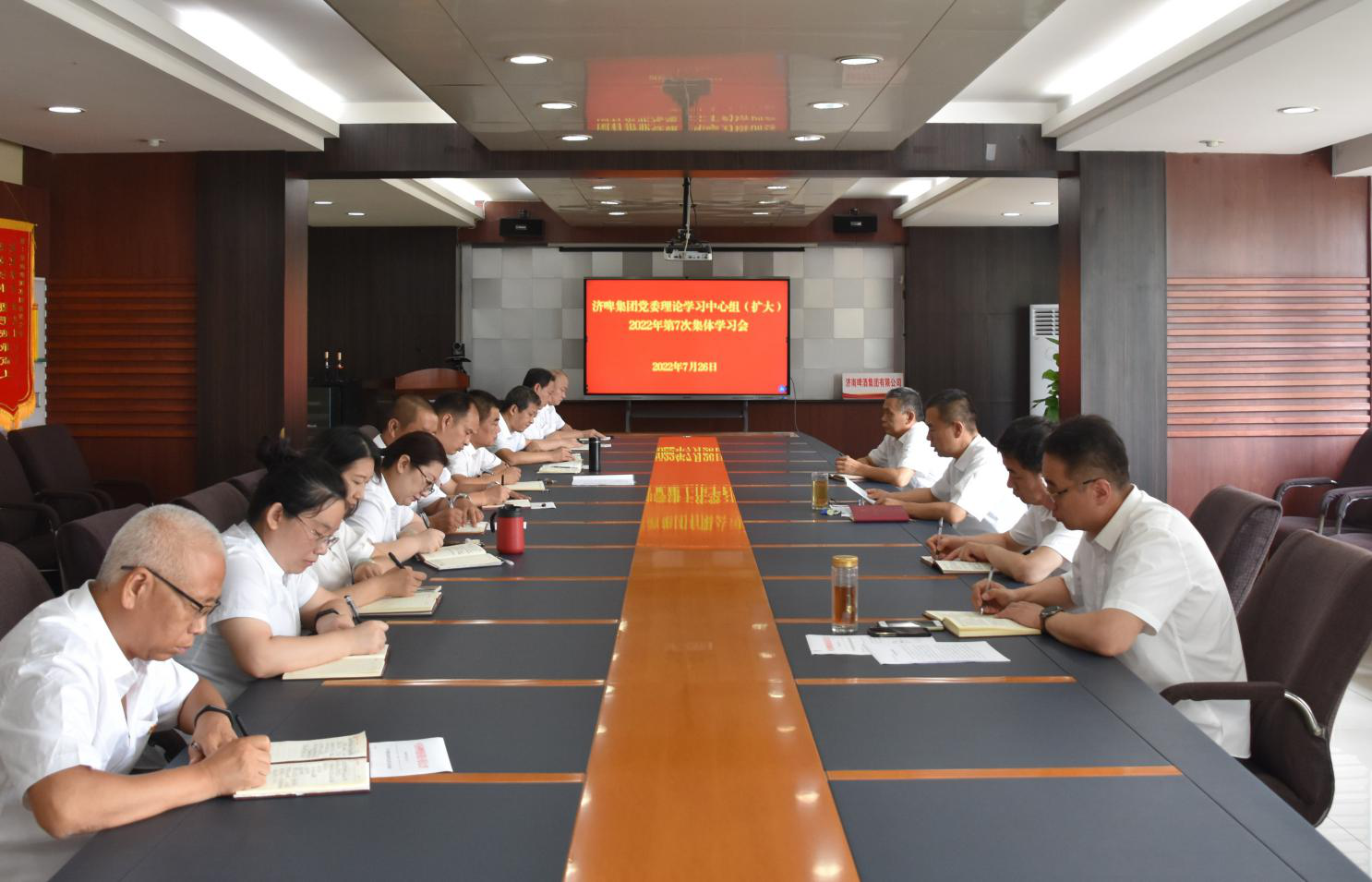 濟啤集團黨委理論學習中心組成員參加會議,總部各部室、各產業園負責人列席會議。