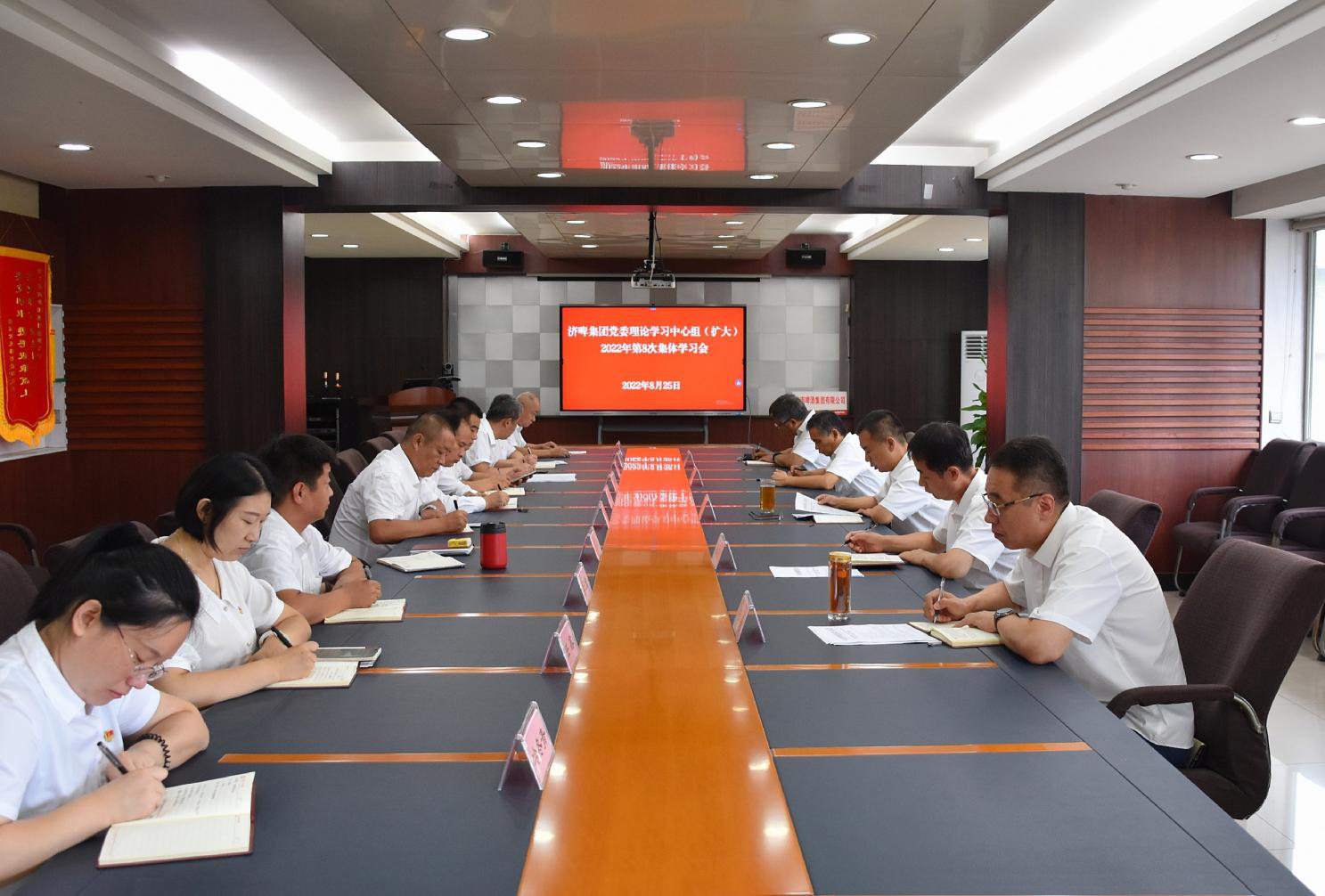 8月25日,濟啤集團黨委書記、董事長周雷主持召開黨委理論學(xué)習(xí)中心組(擴大)2022年第8次集體學(xué)習(xí)會,重點學(xué)習(xí)習(xí)近平總書記在全國宣傳思想工作會議上的重要講話,學(xué)習(xí)省委、省政府《關(guān)于國有企業(yè)創(chuàng)新驅(qū)動高質(zhì)量發(fā)展的十條意見》。