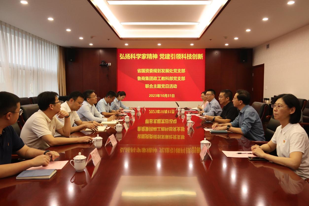 為推動黨建和業務工作深度融合,弘揚科學家精神,以高質量黨建引領高質量發展,10月31日,省國資委規劃發展處黨支部、魯商集團政工教科部黨支部聯合開展“弘揚科學家精神  黨建引領科技創新”主題黨日活動。