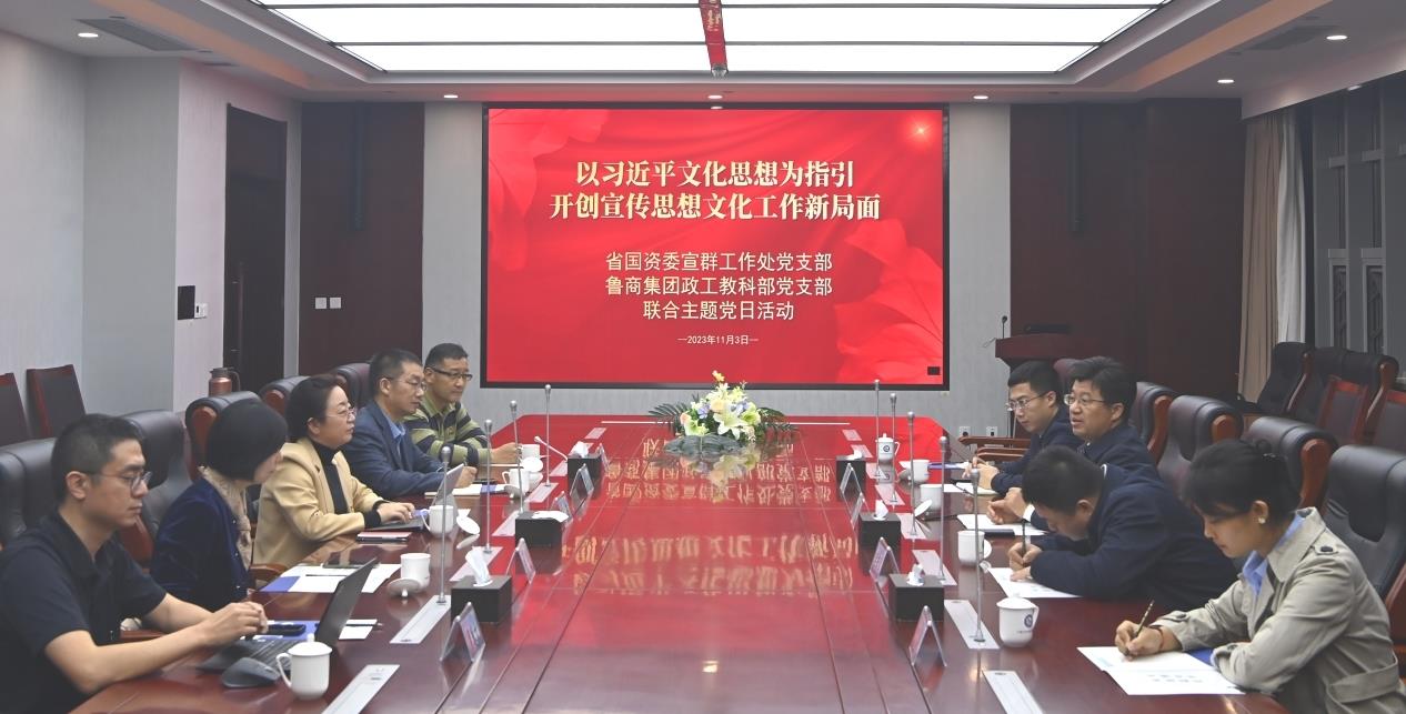 為深入學習貫徹習近平文化思想,推動宣傳思想文化工作展現新形象新作為,推進基層黨組織建設,進一步增強黨支部的凝聚力和戰斗力,11月3日,省國資委宣群工作處黨支部、魯商集團政工教科部黨支部聯合開展“以習近平文化思想為指引 開創宣傳思想文化工作新局面”主題黨日活動