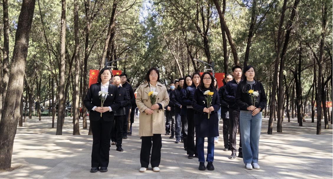 革命烈士陵園內,松柏蒼翠挺拔,氣氛莊嚴肅穆。上午10時,全體人員身著素裝,手持菊花,在前赴后繼雕塑前肅穆站立,全體人員垂首追思,向為民族獨立、人民解放而英勇獻身的烈士致以深切緬懷。默哀畢,眾人緩步上前,逐一為革命烈士獻上鮮花,表達對英雄的崇敬與懷念。