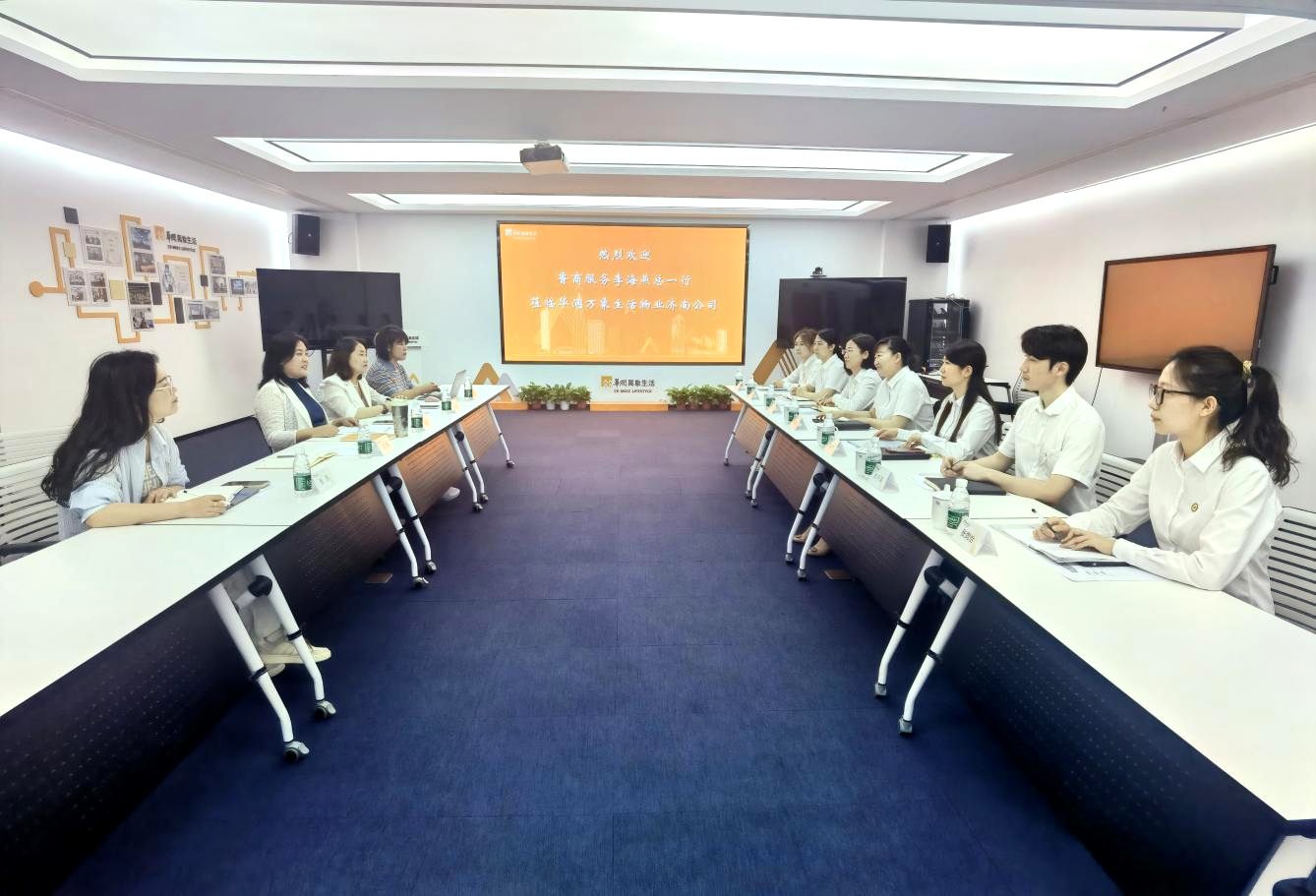 在華潤物業濟南分公司,大家首先參觀了辦公區廊廳文化建設,沉浸式感受其獨特的黨建文化氛圍與企業精神內涵。隨后,華潤物業就黨建引領、紅色物業建設、品牌建設等方面進行了經驗分享,雙方圍繞黨建引領機制、社區治理模式、服務創新舉措、信息化建設以及黨建與生產經營深度融合等核心議題展開了深入交流探討,并結合自身在實際工作中遇到的難點問題進行了充分且富有成效的溝通,大家各抒己見,相互學習借鑒。