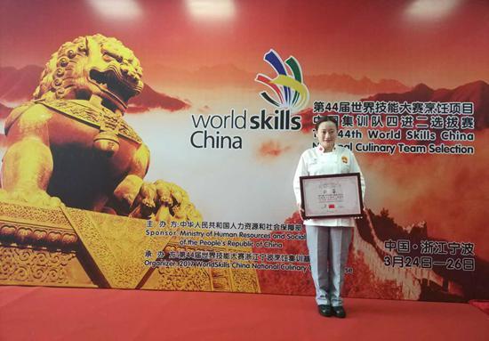 就是在這次大賽中,城市學院烹飪專業的學生曲笛,憑借扎實的基本功和獨特創意,一路過關斬將,成為在世界技能大賽烹飪(西餐)項目中獲獎的第一位中國人。