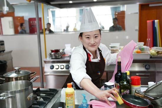 與西方人比拼做西餐,曲笛更看重基本功。她要用西餐刀把土豆絲切得像中餐一樣細。從接觸西餐開始,她沒有一刻松懈基本功的練習,每天站著訓練十幾個小時,在上海迪士尼實習的第一天,就足足切了500斤娃娃菜。