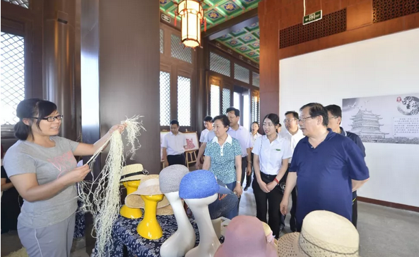 調研過程中,萬鋼一行乘坐360度全景客運觀光索道登臨望海樓,參觀了泥塑,奇石硯臺,草柳編,沂蒙手繡等具有地方特色的文創、非遺產品。又走進沂蒙山小調活態博物館,現場聆聽并共同演唱了原滋原味的《沂蒙山小調》。