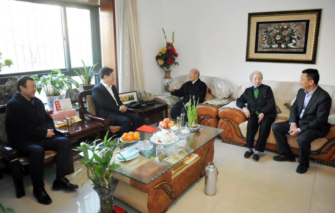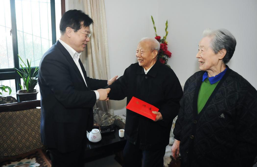 來到程俊德老人家中,張斌關(guān)切地詢問老兩口的身體和生活情況,感謝他們做出的貢獻(xiàn),并認(rèn)真聽取老人的意見和建議。張斌說,根據(jù)省委、省政府安排,他代表省國資委走訪看望老同志。老同志是黨和人民事業(yè)的寶貴財富,山東國資的工作離不開老同志們的支持。隨后張斌介紹了2018年省屬企業(yè)運(yùn)行發(fā)展情況:去年實現(xiàn)營業(yè)收入12707億元,實現(xiàn)利潤總額660億元,同比分別增長14%和40%;資產(chǎn)總額達(dá)到29303億元,主要經(jīng)營指標(biāo)創(chuàng)歷史最好水平。高洪雷也介紹了省商業(yè)集團(tuán)2018年的發(fā)展情況:主要經(jīng)濟(jì)指標(biāo)明顯好轉(zhuǎn),實現(xiàn)了宏觀經(jīng)濟(jì)進(jìn)入新常態(tài)以來的最大增幅。兩人均表示,好成績源于老同志們打下的好基礎(chǔ),也得益于老同志們對工作的支持。