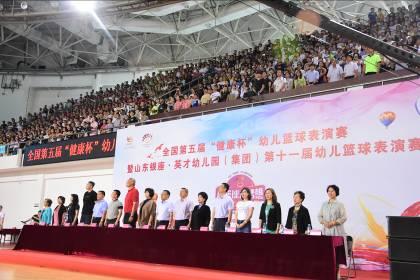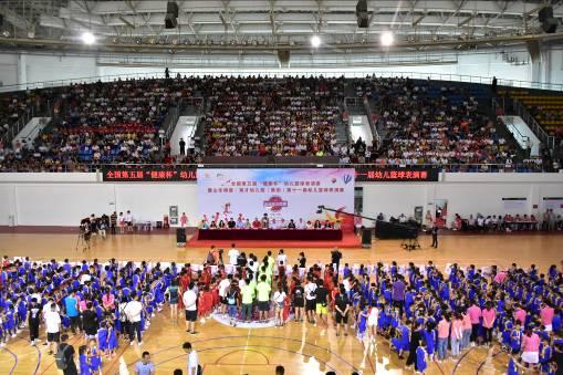 6月16日上午8:00,由中國民辦教育協(xié)會學前教育專業(yè)委員會主辦,山東銀座·英才幼兒園(集團)(以下簡稱銀座幼教)、北京銀座教育集團承辦,山東省籃球運動協(xié)會(以下簡稱省籃協(xié))特別指導的全國第五屆“健康杯”幼兒籃球表演賽暨銀座幼教第十一屆幼兒籃球表演賽于濟南市歷城區(qū)體育中心拉開帷幕。來自全國七省市58支代表隊的近1200名幼兒齊聚泉城,參加了本次幼兒籃球盛事。