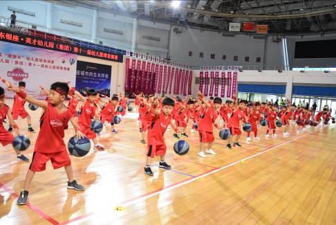 隨后,劉秀華宣布比賽正式開始。銀座幼教濟南片區(qū)百名幼兒以一場大型籃球操表演吹響比賽號角。