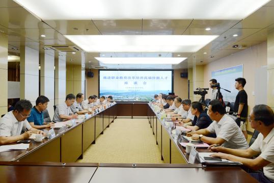 聽取匯報交流發言后,韓金峰指出,職業教育大有可為。要深入學習貫徹習近平總書記關于加快職業教育發展的重要指示精神,牢牢把握服務發展、促進就業的辦學方向,創新教育模式,加快推進產教融合、校企合作。要把深化改革作為職業教育發展的關鍵一招,聚焦重點、難點和熱點,破除制約發展的體制機制障礙,推動職業教育發展方式由規模擴張向質量提升轉變,辦學模式由參照普通教育向產教深度融合的“類型教育”轉變,辦學格局由政府舉辦為主向政府統一管理、社會多元辦學轉變。要把高端技能人才培養作為教育的重中之重,聚焦高端技能人才短缺問題,加強政治把關、提升知識技能、暢通上升通道,研究出臺含金量高、管用有效的政策措施,為新舊動能轉換提供堅實的人才支撐。