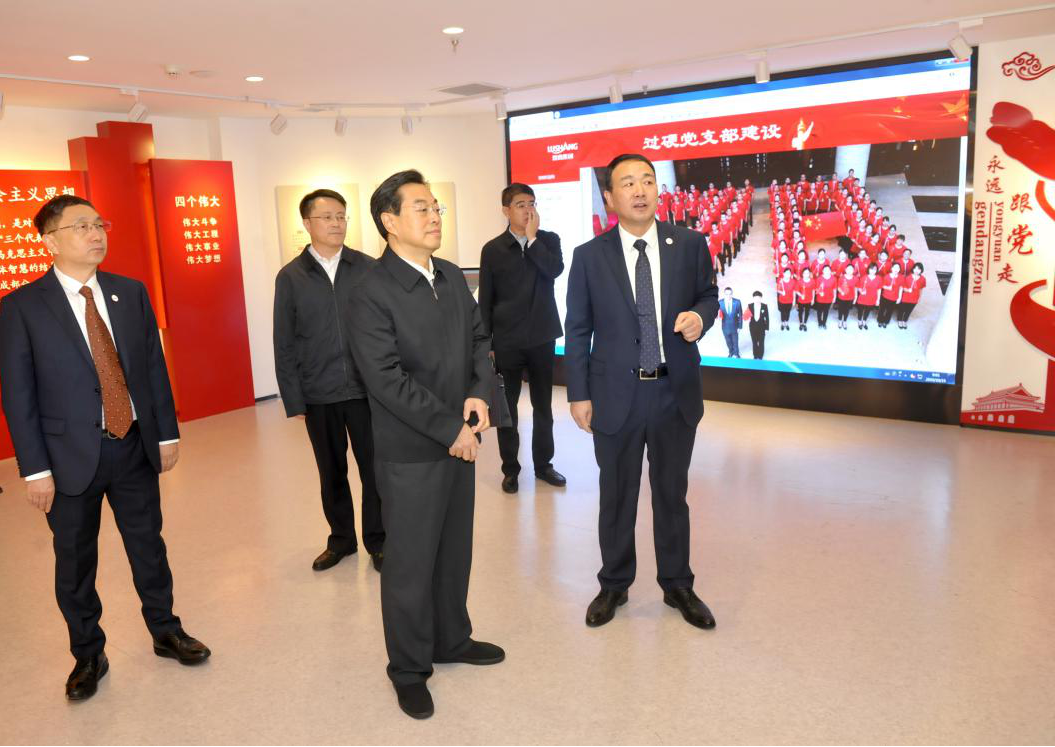 在集團總部黨建活動室,楊東奇詳細了解了集團過硬黨支部建設、遞進培養工程、黨員過政治生日、黨員干部算“三筆賬”等黨建工作情況,并饒有興致地體驗了黨建智慧書屋借閱功能。在集團“初心書屋”,楊東奇聽取了“中國夢·魯商夢·我的夢”讀書競賽活動情況匯報。對于集團黨建工作和企業文化建設,楊東奇給予充分肯定。