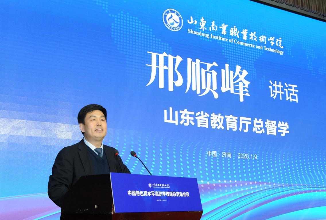 邢順峰在致辭中說,省教育廳將對“雙高計劃”學校給予重點支持,予以政策傾斜。下一步山東商院“定位要準、目標要高、根要扎深、門要打開、思路要活”。山東是國家職業教育創新發展高地,希望山東商院成為這一高地上的旗幟,引領山東省乃至全國的職業教育改革方向,向世界展示風采。