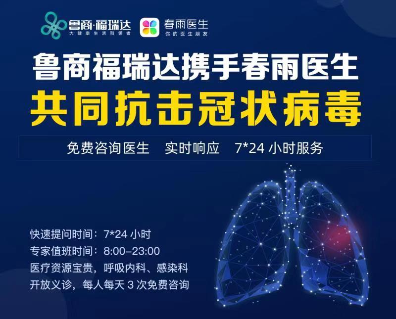 為更好地做好疫情防控工作,自2月4日起,魯商發(fā)展下屬的魯商福瑞達健康投資有限公司聯(lián)合春雨醫(yī)生推出線上義診。用戶通過“福瑞達健康”公眾號底部菜單欄“愛心義診”專題網(wǎng)頁,可向呼吸內(nèi)科、感染科、內(nèi)分泌與代謝科室的在院醫(yī)生進行咨詢,醫(yī)生通過癥狀可初步判斷用戶可能發(fā)熱原因,幫助疑似及時到醫(yī)院接受規(guī)范診療,避免延誤病情。每個手機號注冊登錄后每人每天可免費問診3次。