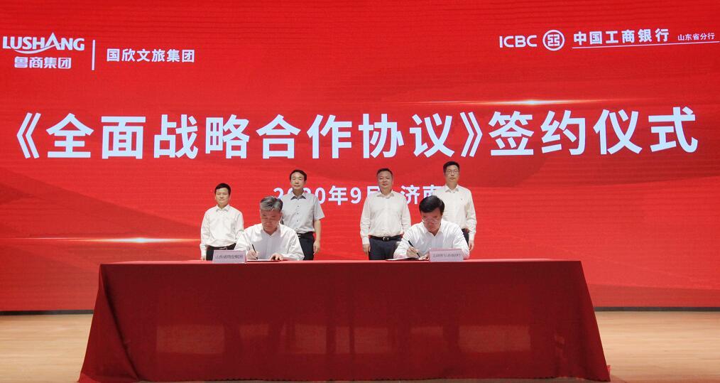 9月9日下午,省商業(yè)集團(tuán)有限公司(簡(jiǎn)稱(chēng)魯商集團(tuán))、省國(guó)欣文化旅游發(fā)展集團(tuán)有限公司(簡(jiǎn)稱(chēng)省國(guó)欣文旅集團(tuán))分別與中國(guó)工商銀行山東省分行(簡(jiǎn)稱(chēng)工行山東省分行)簽署全面戰(zhàn)略合作協(xié)議。魯商集團(tuán)黨委書(shū)記、董事長(zhǎng)兼省國(guó)欣文旅集團(tuán)黨委書(shū)記、董事長(zhǎng)高洪雷,工行山東省分行黨委書(shū)記、行長(zhǎng)趙桂德出席并致辭,魯商集團(tuán)副總經(jīng)理張志強(qiáng)、財(cái)務(wù)總監(jiān)王遠(yuǎn)良,工行山東省分行副行長(zhǎng)吳迎春,工行山東省分行副行長(zhǎng)兼濟(jì)南分行行長(zhǎng)張冠軍出席簽約儀式。