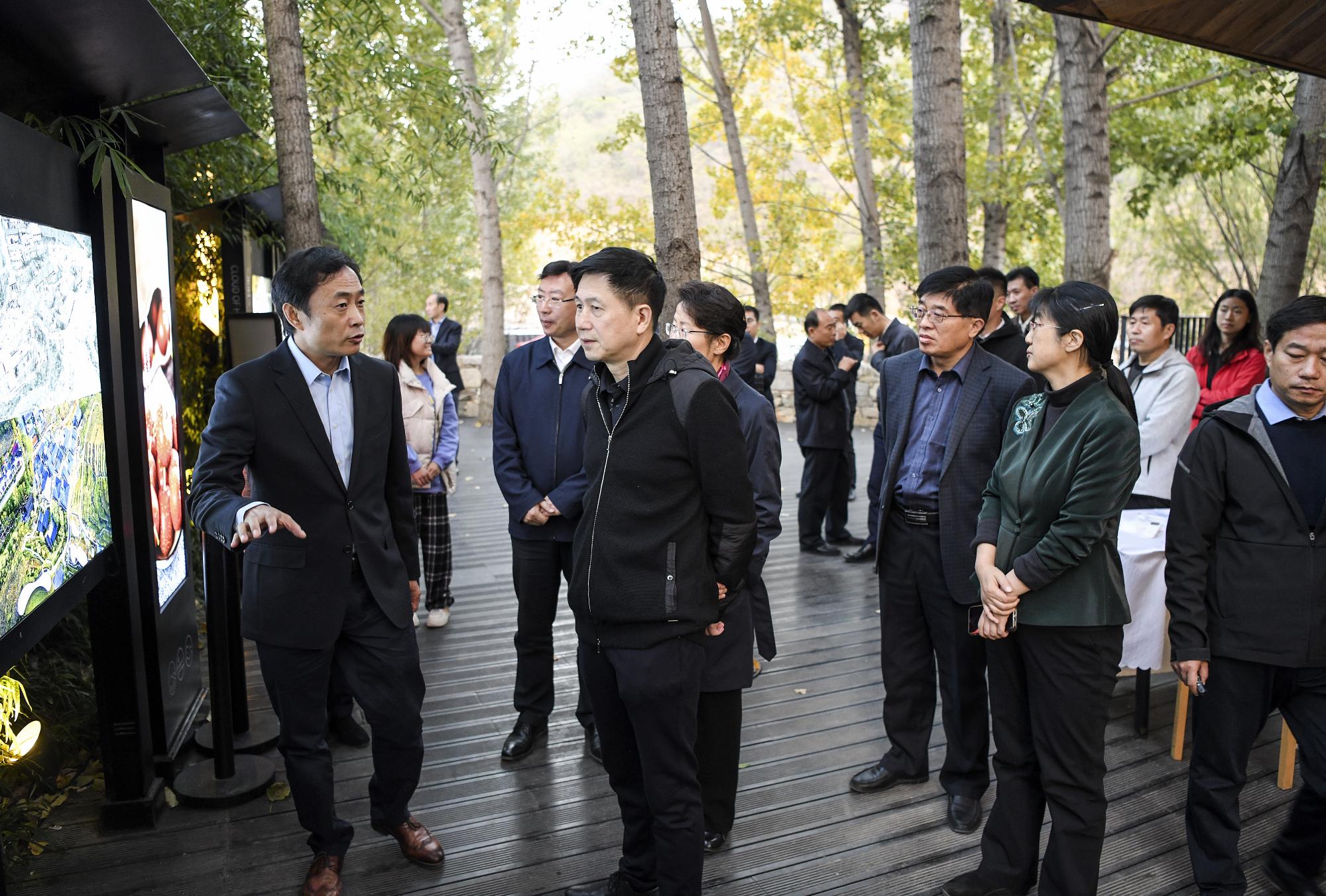 10月25日,文化和旅游部黨組成員王曉峰一行調研泰山·九女峰鄉村度假區。文化和旅游部非物質文化遺產司副司長鐘建波,省文化和旅游廳黨組書記、廳長、省文物局局長王磊,泰安市市委副書記、市長張濤,副市長成麗陪同調研。