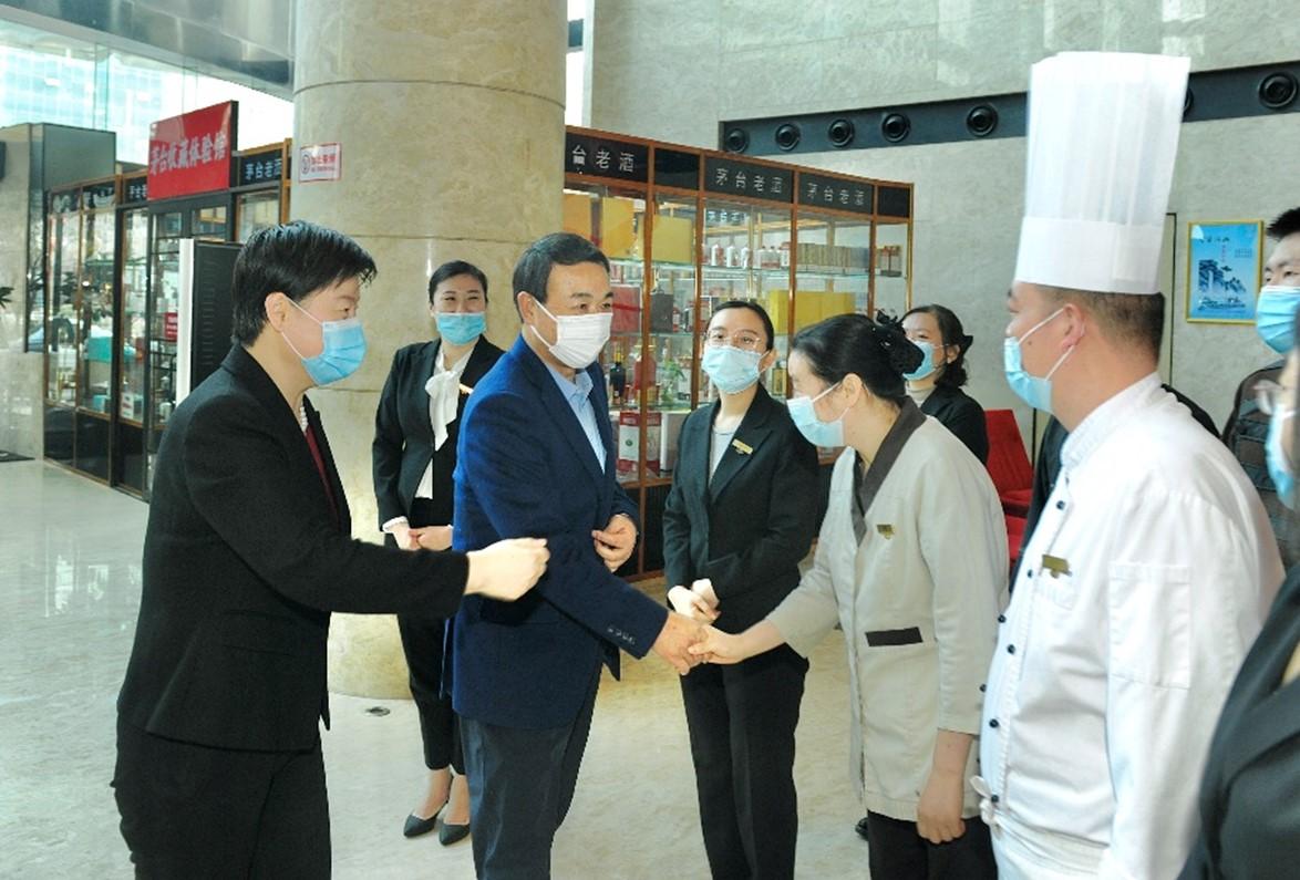 2月11日(農(nóng)歷大年三十)上午,魯商集團黨委書記、董事長兼國欣文旅董事長高洪雷,先后來到濟南索菲特銀座大飯店、銀座泉城廣場店,看望慰問堅守在工作崗位的一線干部職工,代表集團向廣大干部職工致以節(jié)日問候和新春祝福,同時實地調(diào)研春節(jié)期間民生商品市場供應(yīng)、便民消費服務(wù)和疫情防控措施落實情況。魯商集團首席電子商務(wù)官,銀座集團黨委書記、董事長布廷現(xiàn)陪同。