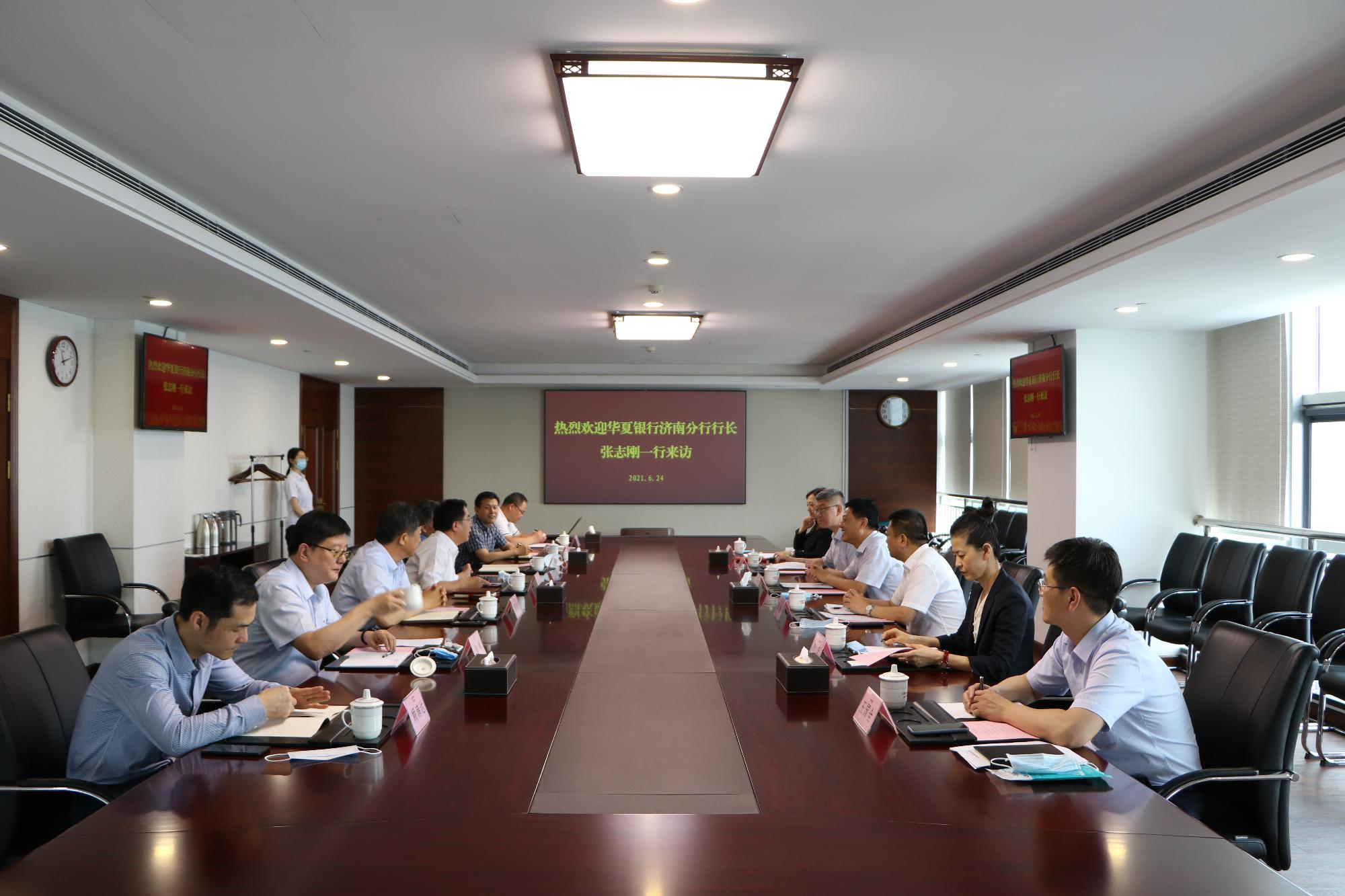 6月24日,魯商集團(tuán)黨委副書記、總經(jīng)理郭訓(xùn)成,在濟(jì)南會(huì)見來訪的華夏銀行濟(jì)南分行行長(zhǎng)張志剛一行。集團(tuán)黨委委員、副總經(jīng)理張志強(qiáng)出席活動(dòng)。
