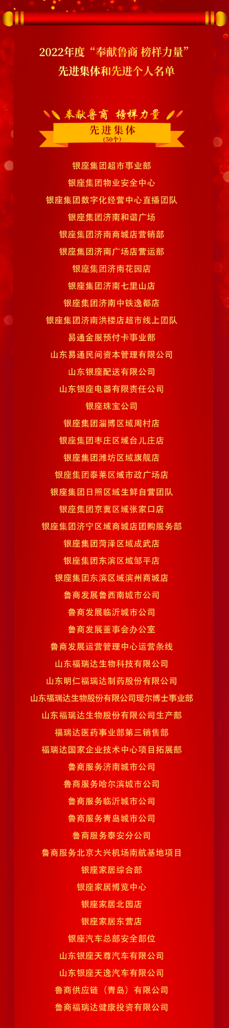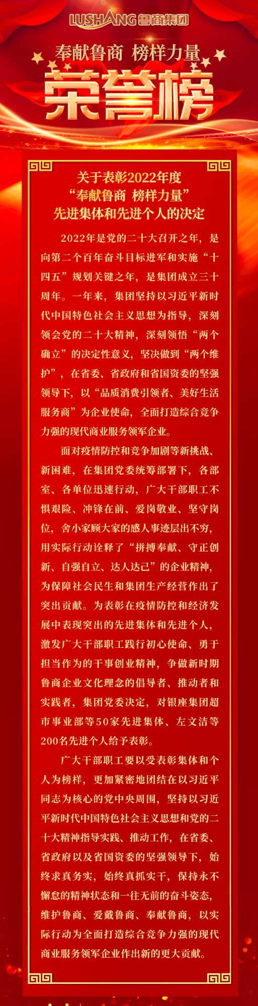 魯商集團2022年度“奉獻魯商 榜樣力量”先進集體和先進個人榮譽榜