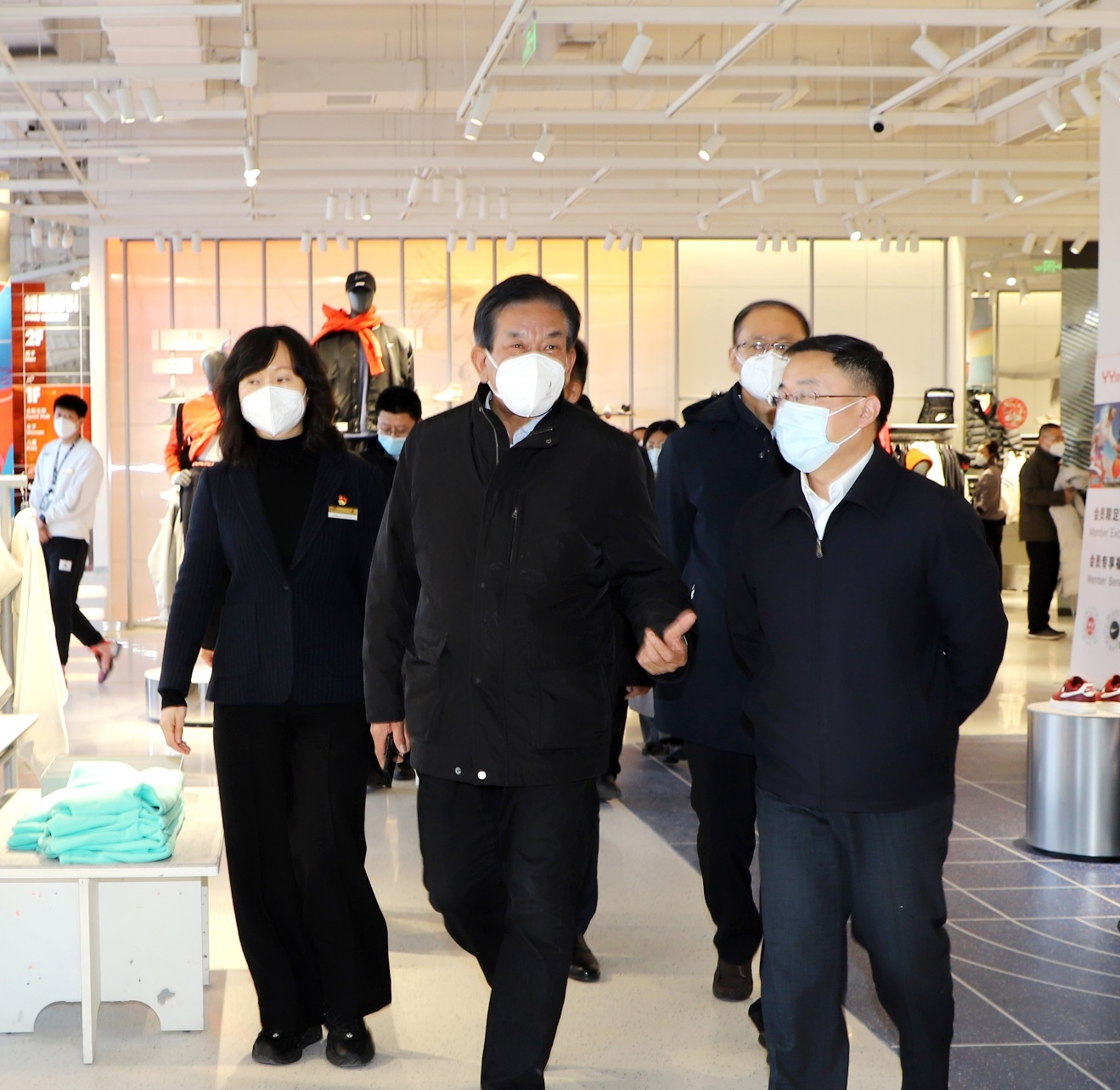 1月20日,省商務廳副廳長王洪平到銀座濟南玉函店調研節日期間市場供應情況,濟南市商務局局長孫戰宇參加調研,魯商集團黨委副書記、董事、副總經理朱華建陪同。