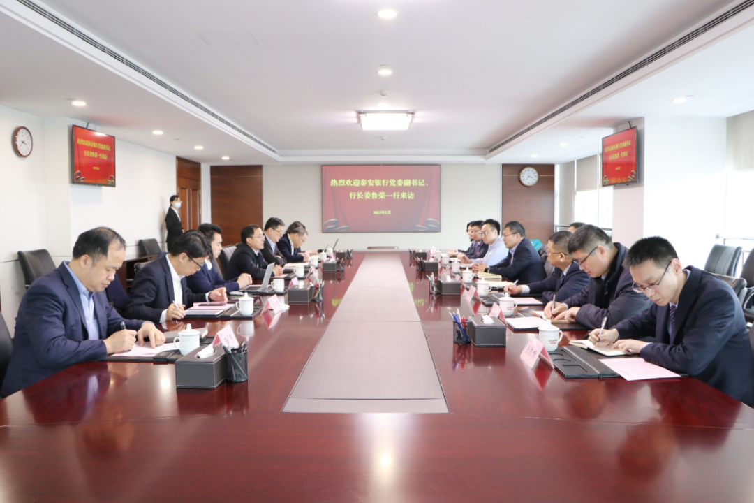 2月24日,泰安銀行黨委副書記、行長姜魯榮到訪魯商集團,集團黨委副書記、董事、副總經理朱華建熱情接待并舉行座談。