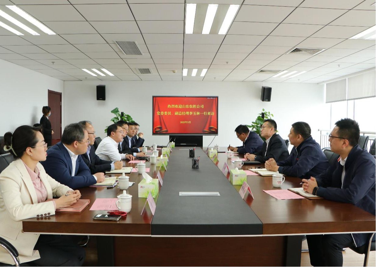 3月23日,山東農擔黨委委員、副總經理李玉林到訪魯商集團,集團黨委副書記、董事、副總經理朱華建熱情接待,雙方圍繞進一步推動合作進行座談交流。