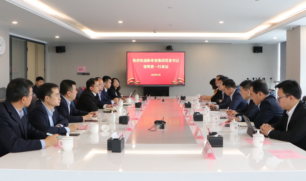 4月24日,新希望集團(tuán)黨委書記、新希望六和股份有限公司執(zhí)行董事長、總裁張明貴到訪魯商集團(tuán),集團(tuán)黨委副書記、董事、副總經(jīng)理朱華建熱情接待并舉行座談。