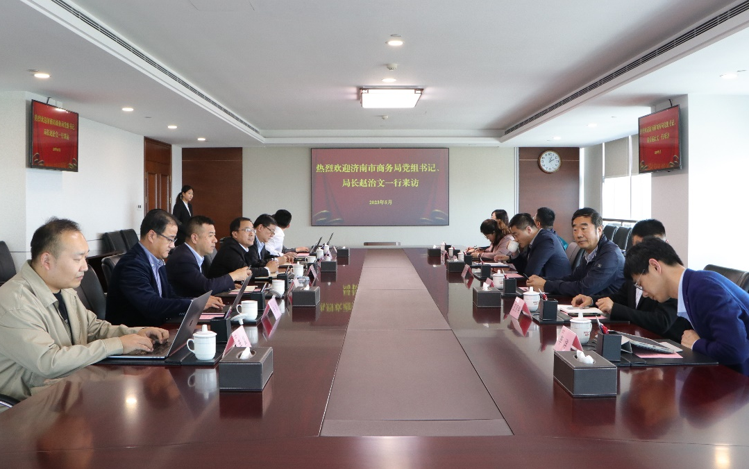 5月6日,濟南市商務局黨組書記、局長趙治文到訪魯商集團,集團黨委副書記、董事、副總經理朱華建熱情接待并舉行座談。
