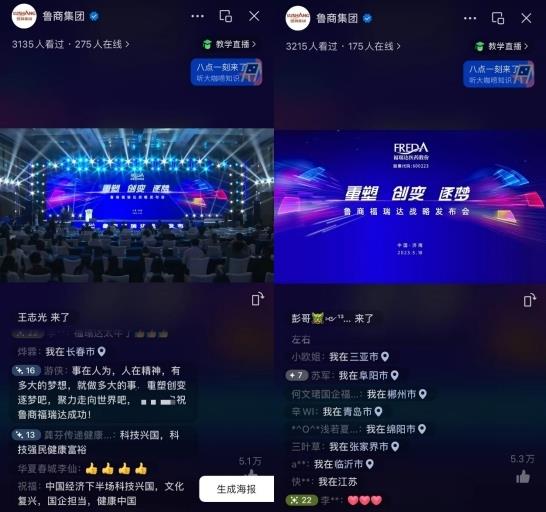 本次發(fā)布活動通過“魯商集團(tuán)”微信視頻號、抖音號、“福瑞達(dá)醫(yī)藥集團(tuán)”微信視頻號同步直播,全國各地網(wǎng)友、粉絲共同線上見證魯商福瑞達(dá)的這一重要時刻,并寄語公司展現(xiàn)國企擔(dān)當(dāng)、勇挑科技興國重任。