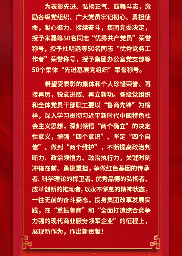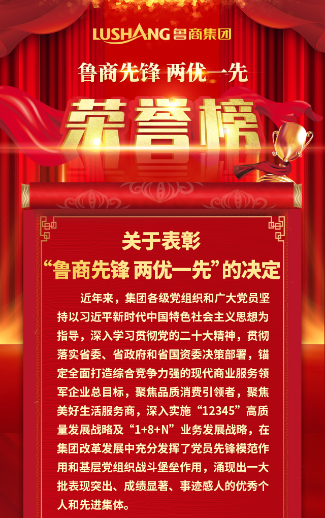 中共山東省商業(yè)集團(tuán)有限公司委員會(huì)關(guān)于表彰“魯商先鋒 兩優(yōu)一先”的決定