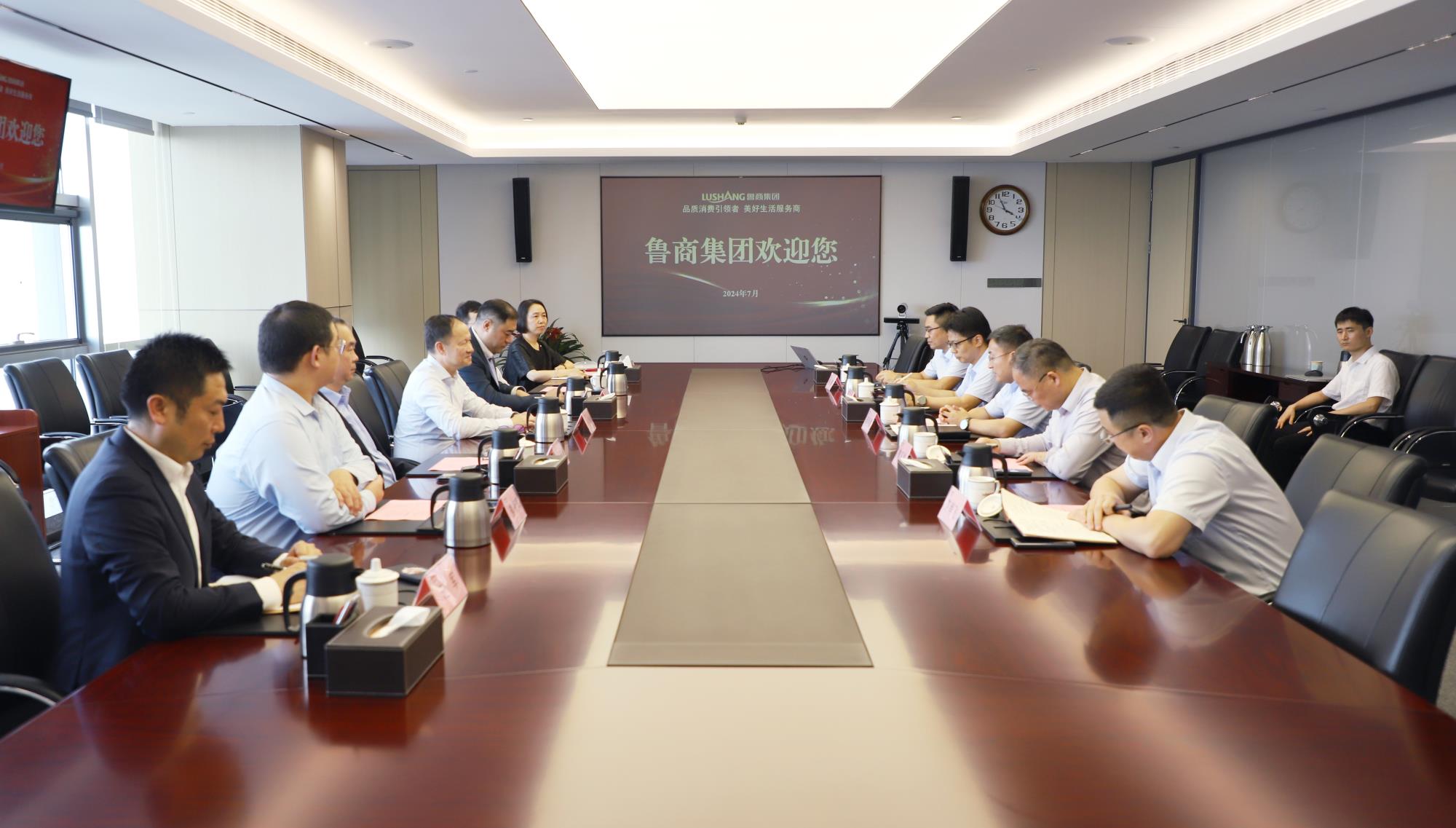 719日,東亞銀行(中國)執行董事兼行長何舜到訪魯商集團,集團黨委副書記、董事、總經理朱華建熱情接待并舉行座談。