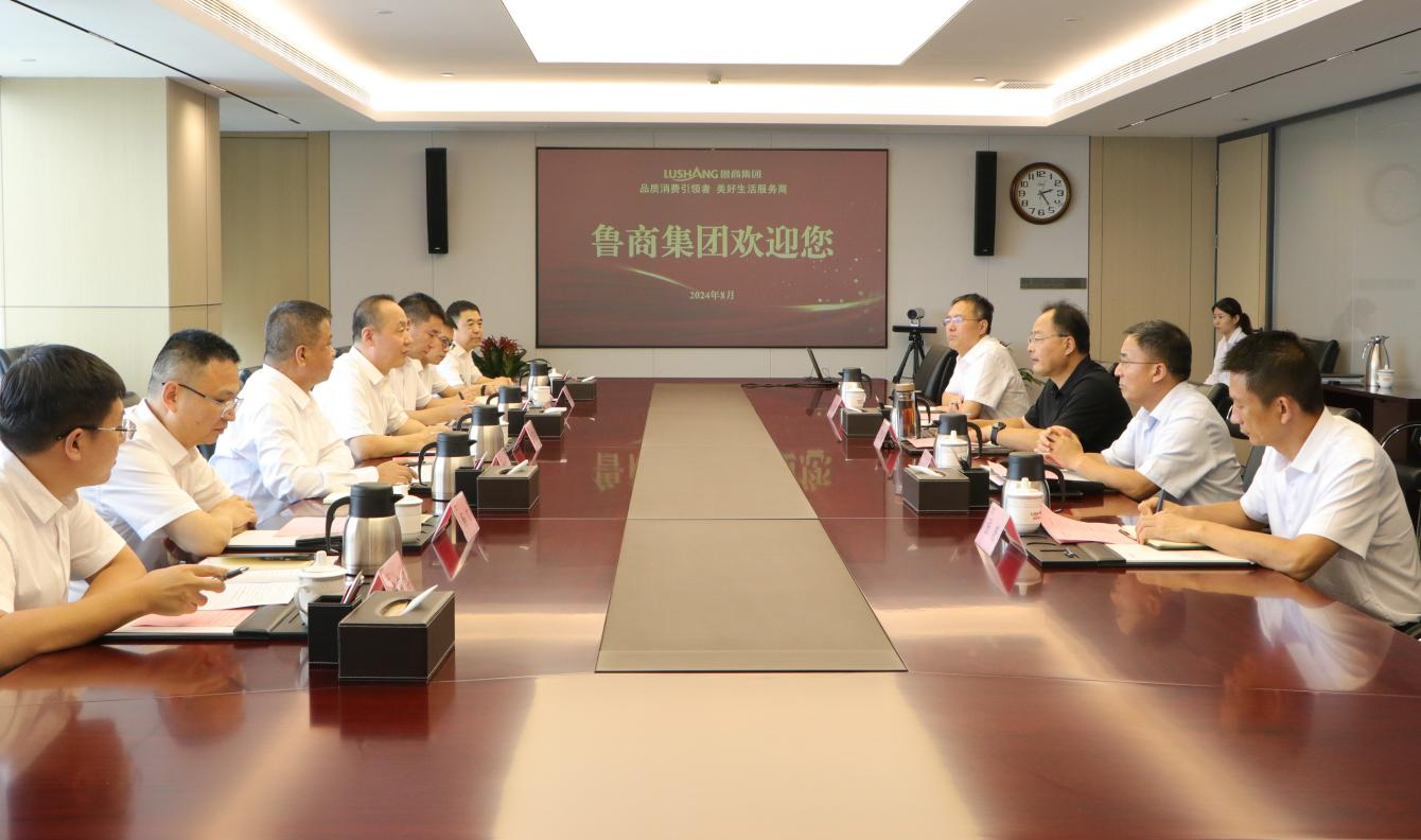 8月21日,中交一公局集團有限公司黨委副書記、總經理李英俊到訪魯商集團,集團黨委書記、董事長王緒超熱情接待并舉行座談,黨委副書記、董事、總經理朱華建參加活動。