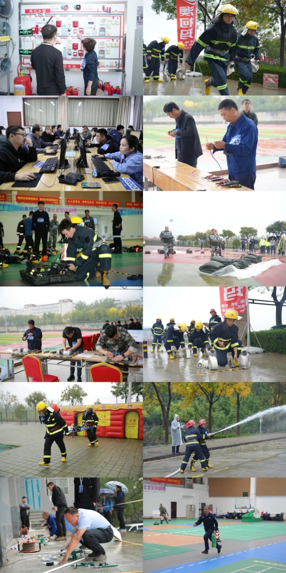 此次大賽由集團工會和安全管理部聯合組織,山東商職學院承辦,澳柯瑪公司、福瑞達、銀座電器協辦。經過前期層層選拔,來自集團所屬單位234支參賽隊伍的322名員工齊聚賽場,展開激烈比拼。競賽分為安全類競賽項目和物業技能類競賽項目兩大類,共設置個人防護裝備穿戴、兩人水帶連接、安全理論知識考核、消防器材的正確使用、火場救援、防汛沙袋碼放、電源導線連接、電氣配盤、PPR給水管道連接、消防主機實操等10個競賽項目。