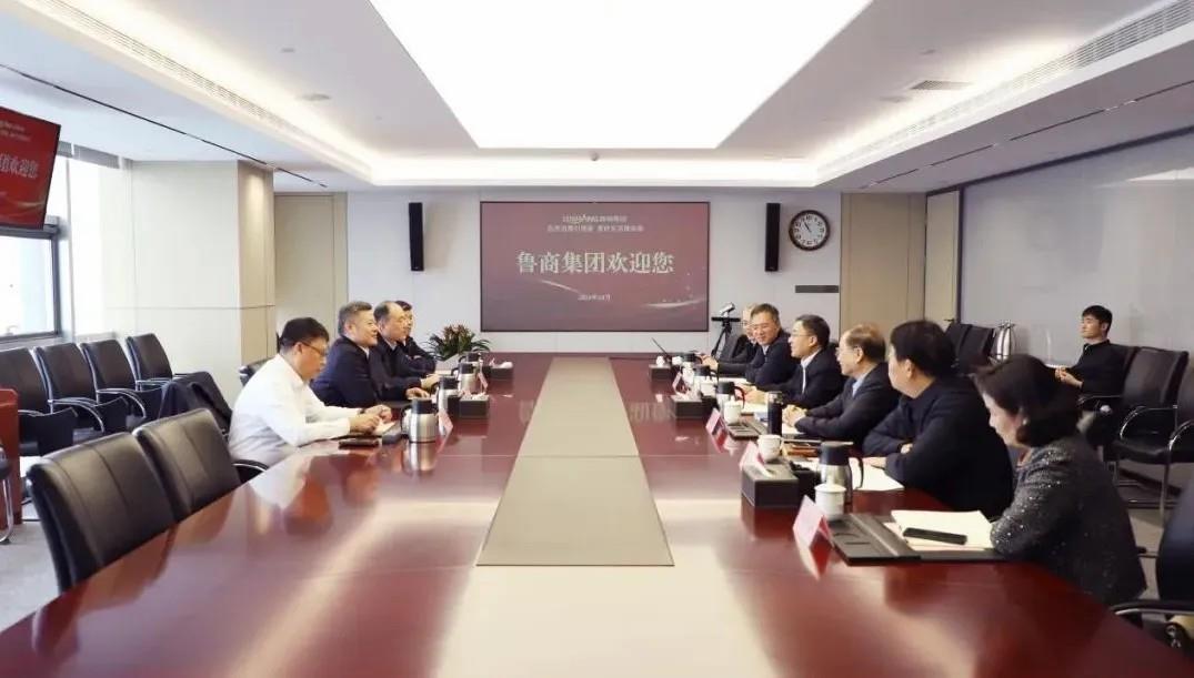 10月22日,微山縣委副書記、縣長郭鑫一行到訪魯商集團,集團黨委副書記、董事、總經理朱華建熱情接待并舉行座談,國家農產品現代物流工程技術研究中心首席專家,山東省物流與采購協會名譽會長、專家委主任王國利參加活動。
