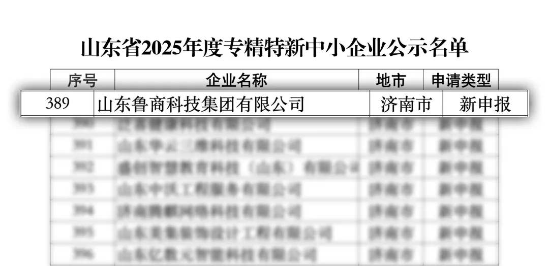 近日,魯商科技順利通過了省工信廳山東省2025年度專精特新中小企業公示,榮獲山東省“專精特新”中小企業稱號。