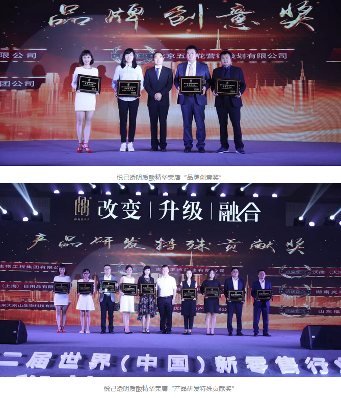此次活動緊緊圍繞“改變 升級 融合”主題,聚焦新零售新熱點、新話題,匯集了包括福瑞達醫(yī)藥集團在內(nèi)的500多位行業(yè)精英、供應商,共同探尋中國新零售發(fā)展的新機遇,把脈零售行業(yè)發(fā)展新路徑,并對新零售重要落地形態(tài)之一的直銷展開深度解讀。在頒獎典禮上,福瑞達醫(yī)藥集團憑借強大的產(chǎn)品研發(fā)實力、創(chuàng)新的發(fā)展模式以及有目共睹的產(chǎn)品口碑廣受贊譽,明星產(chǎn)品悅己透明質(zhì)酸精華成功攬獲“品牌創(chuàng)意獎”和“產(chǎn)品研發(fā)特殊貢獻獎”兩項大獎。
